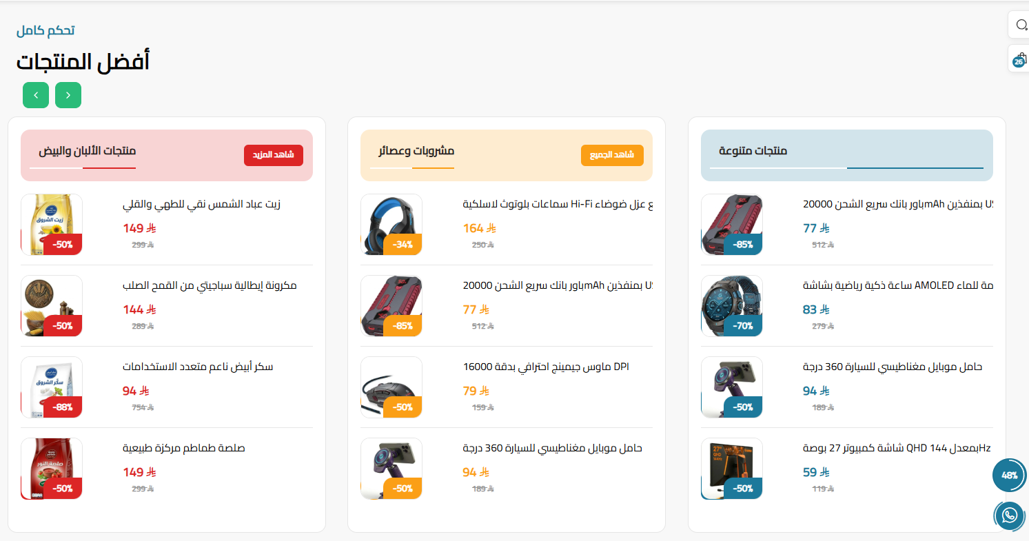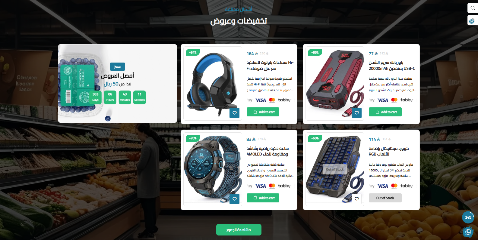 اعرض مجموعات منتجاتك المختلفة في تبويبات منظمة تتيح للزائر التصفح السريع بين الأكثر مبيعاً والجديد والعروض.