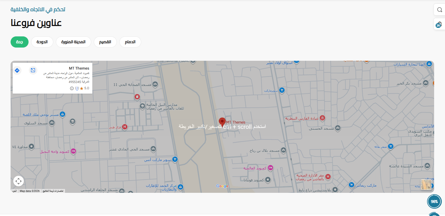 ◂ كود تضمين الخريطة: كود iframe من جوجل ماب لعرض موقع الفرع.