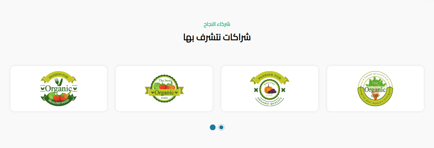 قسم لعرض شعارات الشركاء أو الموردين أو العلامات التجارية المرتبطة في شريط سلايدر أو قائمة.